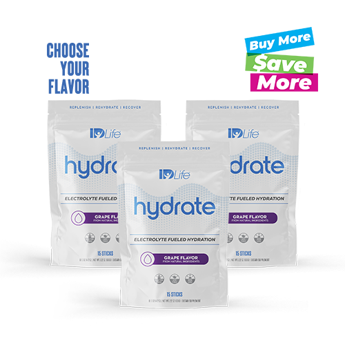 15 sticks per bagIndividually wrapped Hydrate powder in Watermelon (Seasonal), Lemon Lime, Fruit Punch, or Grape. Replenish, rehydrate, and recover with an IDLife’s electrolyte fueled hydration drink mix.